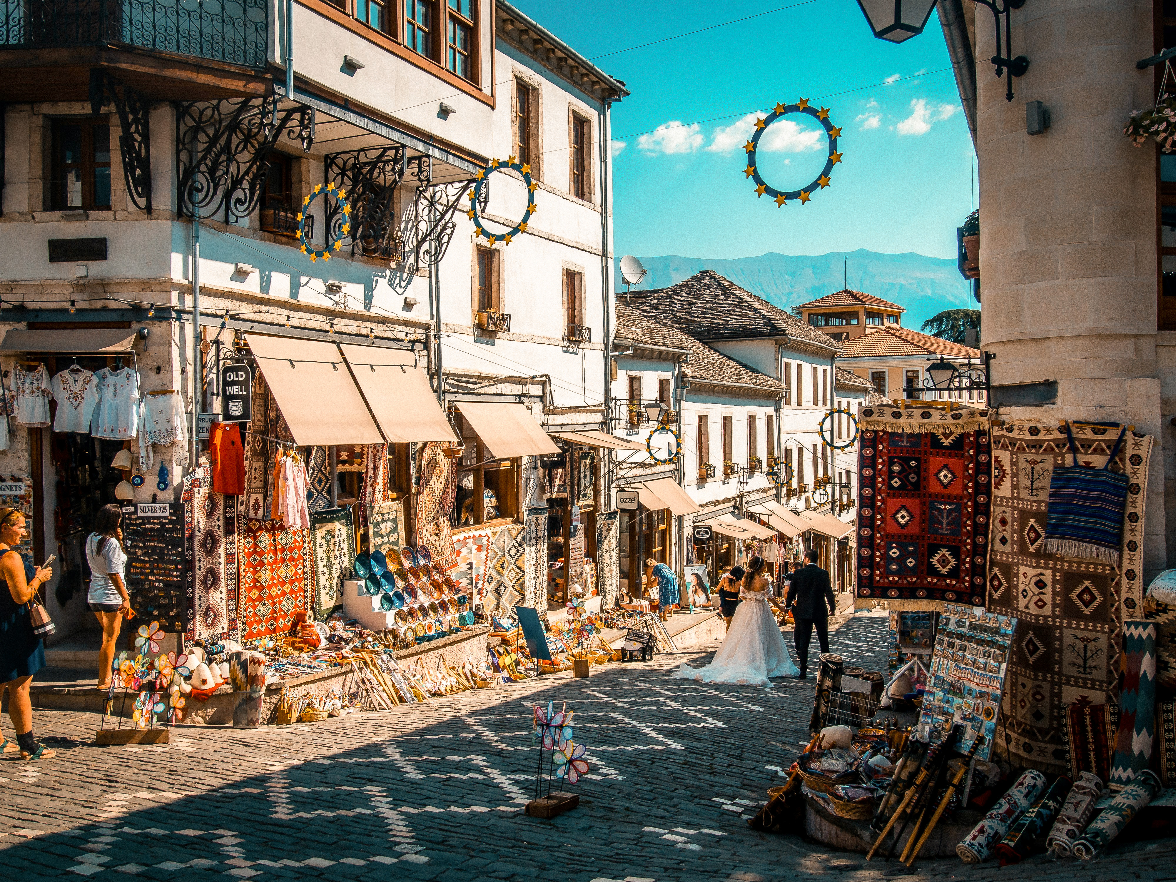 Tillbaka i Gjirokastër vandrar vi i stadens branta gator och upptäcker varför den kallas “den glimrande staden”, med stentak och kalkstensgator som skimrar i ljuset.
