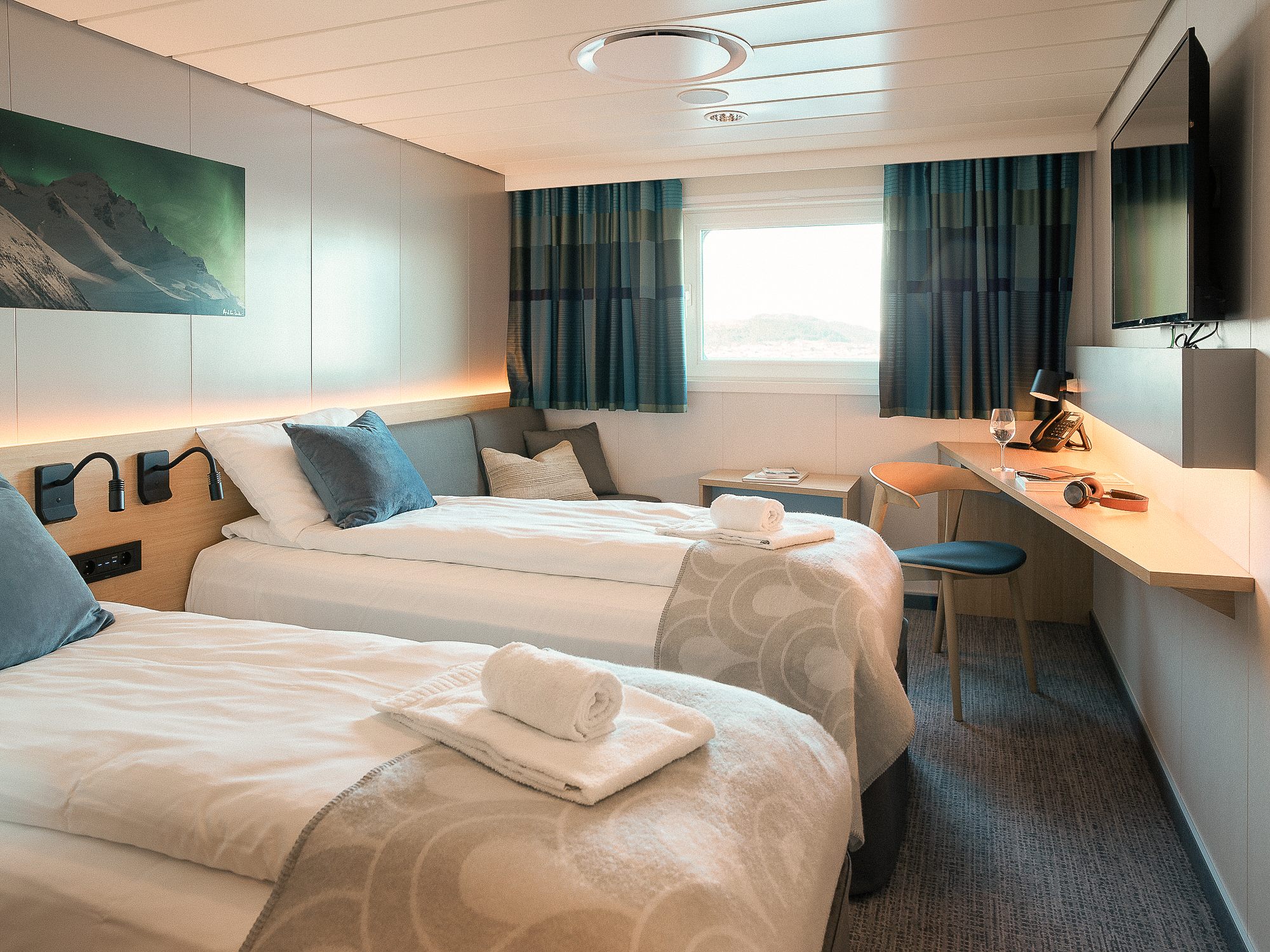Enkelrum/fönsterhytt på däck 4 eller 5: 16 610 kr per person (6 nätter)