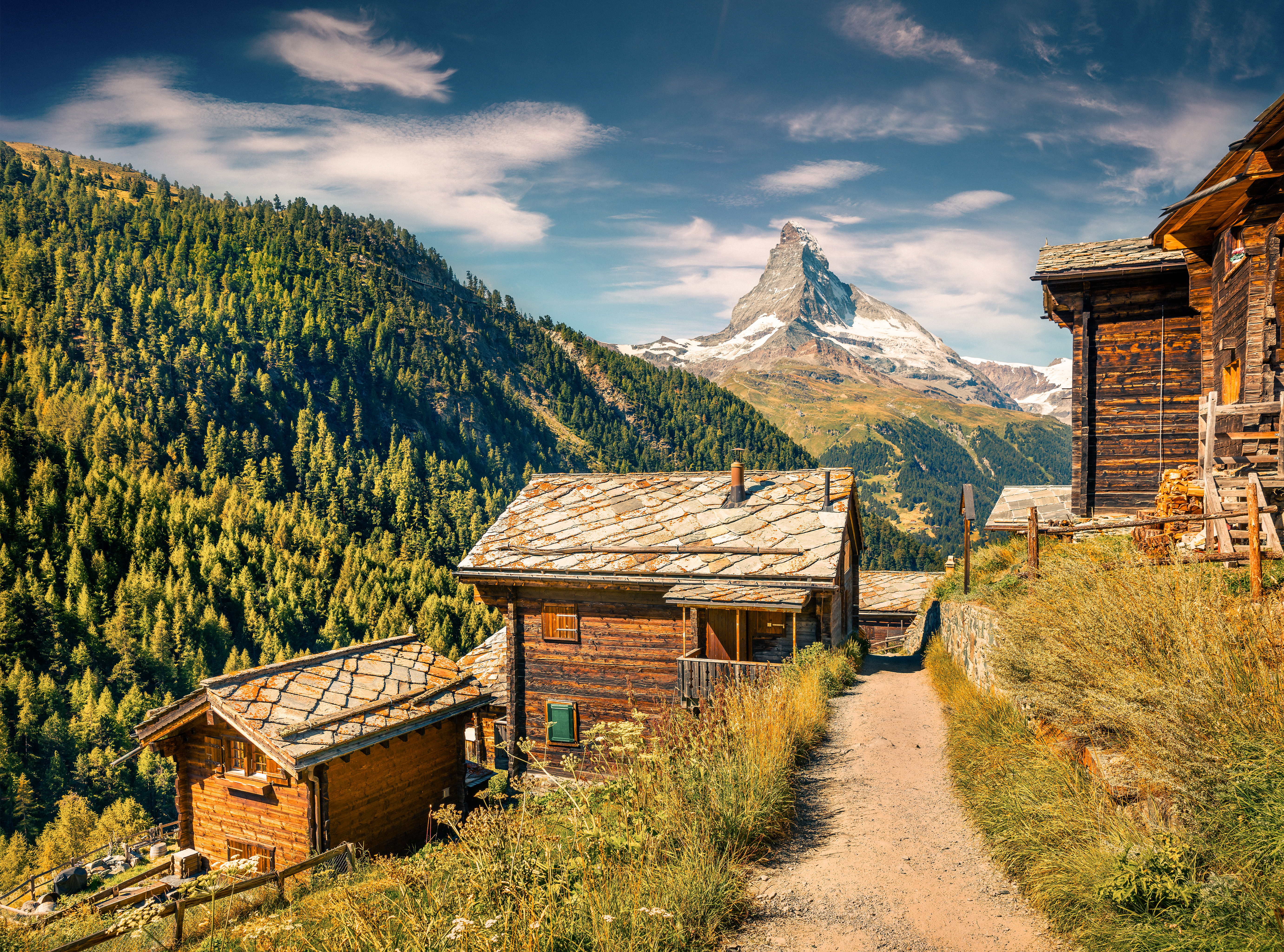 Efter frukost lämnar vi Montreux och reser genom böljande dalar till charmiga Gruyères, där vi får provsmaka byns berömda ost. Den görs på mjölk från kor som betar fritt på bergssluttningarna, en tradition som sätter sin alldeles egna prägel på smaken. Resan fortsätter till Sion, en av landets äldsta städer, där vi njuter av en lunch innan vi styr vidare mot Täsch. Här byter vi till ett tåg som tar oss genom det vackra alplandskapet till Zermatt, den bilfria byn vid Matterhorns fot. Efter incheckning väntar en gemensam middag på en lokal restaurang.
